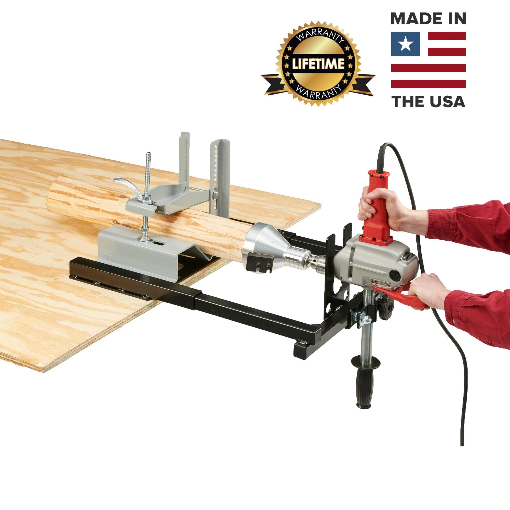 - Made of highly-durable all-steel construction with integrated log lock mounting points, a sturdy drill alignment plate, and an easy-to-use log size adjustment system.